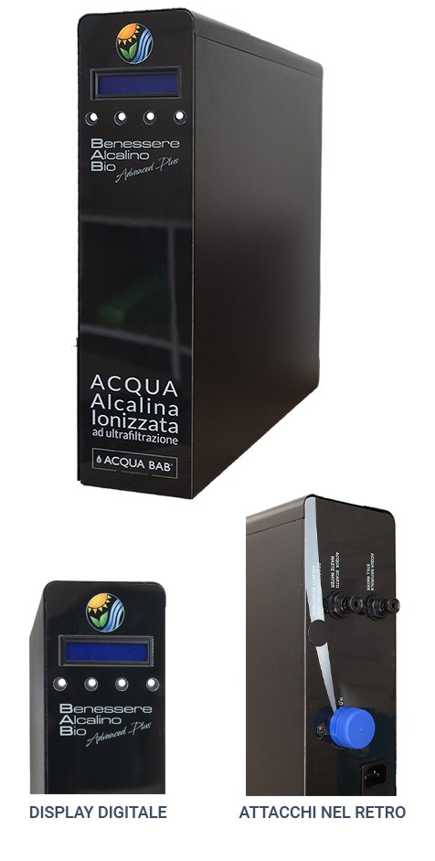 Benessere Alcalino Bio "Advanced Plus" è un sistema integrato di ionizzazione e ultrafiltrazione che rende l’acqua proveniente dal tuo rubinetto ricca di ossigeno e minerali nobili.